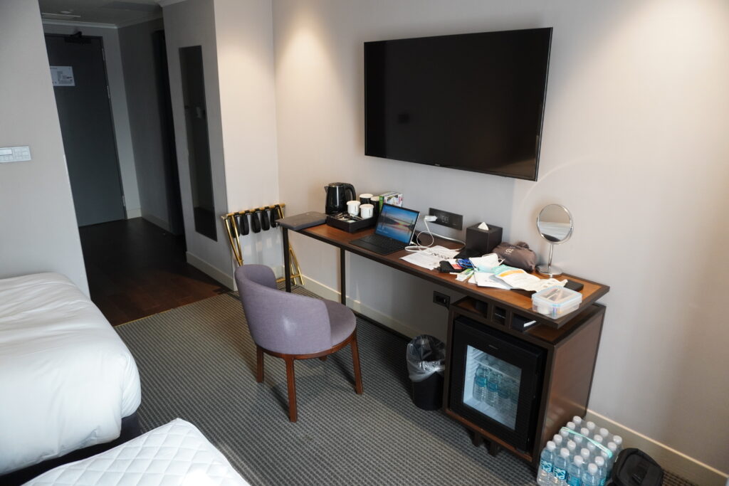 Danach raus aus dem Flieger und anstellen in der Schlange für die Kontrolle der Angegebenen Gesundheitsdaten und einmal Temperatur messen. Das zog sich etwas, war aber weiter kein Problem. Im nächsten Schritt ging es nun zur Überprüfung der Quarantäne Unterkuft. Dort legte man ebenfalls alle Zettel vor und es wurde versucht die angegebene Person/Unterkunft zu erreichen. Zu meinem Glück haben alle Daten gestimmt und auch diese Station war nach etwas Zeit gemeistert. Anschließend wurden die Formulare noch einmal überprüft und dann konnte endlich mit der eigentlichen Einreise begonnen werden. Passkontrolle passiert, dann noch Gepäck suchen und durch den Zoll, raus in die nächsten Arme von Leuten vor Ort, die für den Transport in die Quarantänte Unterkunft verantwortlich sind. Nach kurzer Wartezeit, ging es dann zu viert, mit drei anderen Leuten, in ein spezielles Taxi, was uns nach 1 bis 1,5h im Seouler Stadtverkehr an der Quarantänte Unterkunft abgesetzt hat. Dort noch eine Einweisung und das Zimmer bekommen, aus dem ich gerade schreibe. Hier sind noch ein paar Bilder aus dem Zimmer: