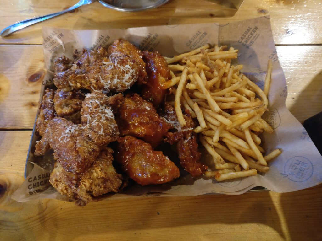Heute war es dann wieder weniger spannend. Da einer der Proffesoren, pünklich seine Sachen hochgeladen hatte, konnte ich noch vor meinen eigentlichen Vorlesungen wieder etwas weg arbeiten. Anschließend gab es eine Stunde online Zoom Meeting für einen anderen Kurs. Zu Mittag hatte ich mich noch mit meiner Nachbarin verabredet, die in der gleichen Unterkunft wie ich wohnt. Nach leckerem Essen (leider kein Bild) und noch einer Lemon Ade ging es wieder Heim für die nächste Runde Uni. Danach habe ich mich noch mit einem anderen Studenten getroffen, den ich zuvor schon über die Info E-Mails der TUM kennen gelernt habe. Wir waren kurzerhand Chicken & Beer essen bzw. trinken (Bild ist unten) und nun ging es wieder Heim, damit ich meinen Block wieder schreiben kann 😀