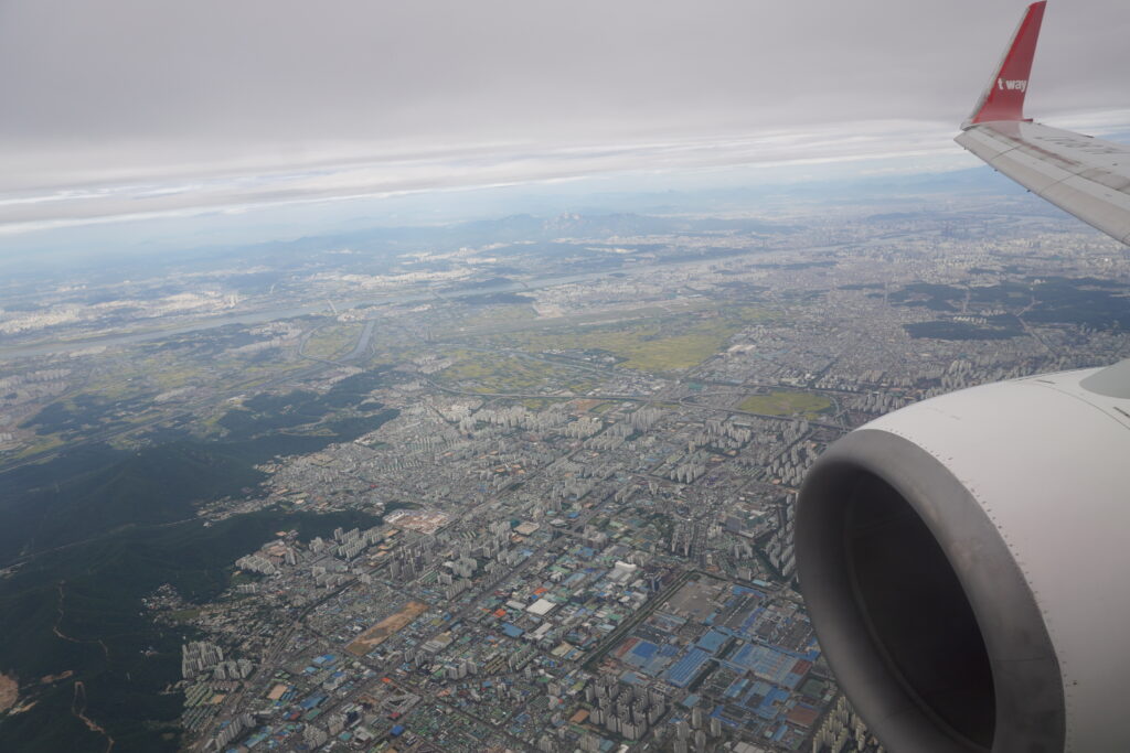 Vorgestern (Dienstag) ging es dann in aller Früh wieder los Richtung Flughafen und Hauptstadt. Die Bus Route hatten wir vorher schon raus gesucht, die wir nehmen mussten. Es stellte sich nur leider heraus, dass unser Bus zu spät kam und zwar leider so viel zu spät, dass wir unseren Anschluss verpassten. Das war zum Glück eingeplant und nicht weiter tragisch außer das man ein bisschen warten musste. Nach ca. einer halben Stunde war dann der nächste Bus da, der uns direkt bis zum Flughafen gebracht hat. Am Flughafen durch die Sicherheitskontrolle gezischt waren wir auch schon am Gate. Vorher noch einmal kurz nach Souveniers gestöbert und dann zum Gate gelaufen. Am Gate angekommen, ging es dann auch schon mit dem Bording los. Kurz noch gewartet und dann ging es runter aufs Rollfeld und mit dem Bus zum Flieger. Einsteigen und Platznehmen bitte. Keine zehn Minuten nach dem Einsteigen war der Flieger auch schon fertig und machte sich auf den Weg zur Startbahn. Schwupp in der Luft und ca. eine Stunde später ging es dann zum Landeanflug auf Seoul. In Seoul durch den Flughafen zur U-Bahn und im nu war man wieder daheim in gewohnter lage. Anschließend wurde noch alles ausgepackt, aufgeräumt, gewaschen und wieder verstaut. Anschließend gab es noch ein kleines Abendessen und damit war der Tag auch schon wieder vorbei. Hier noch die Bilder vom Flug: