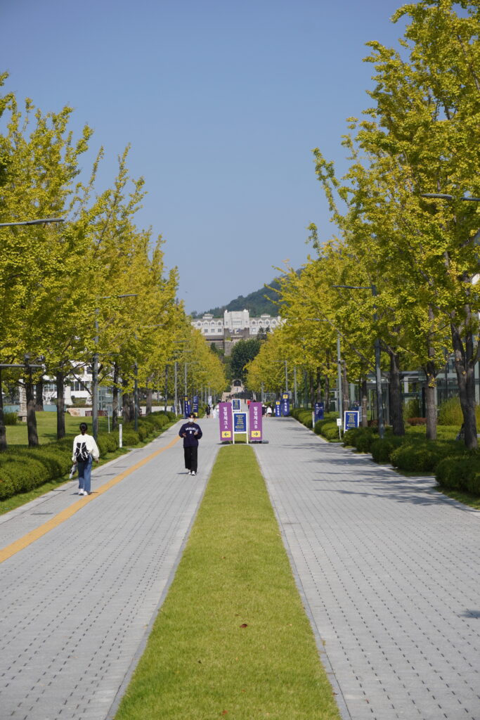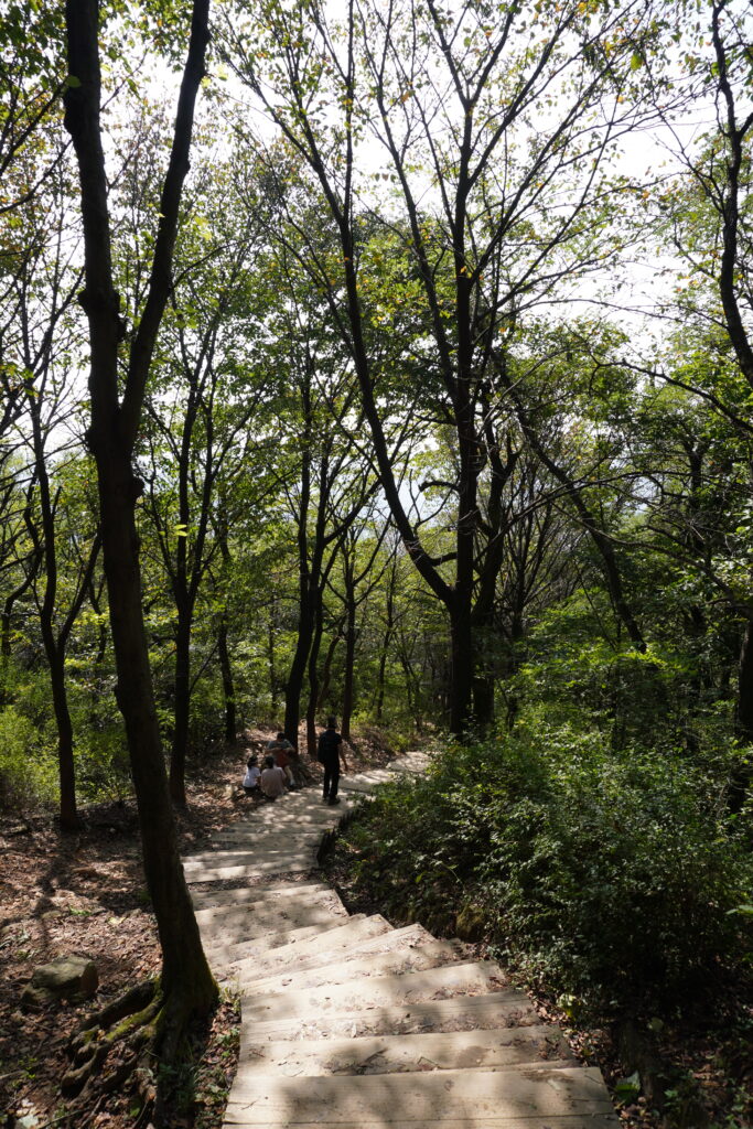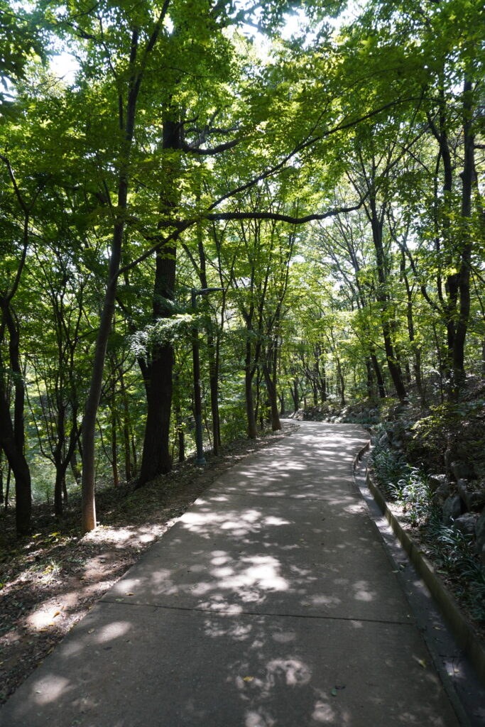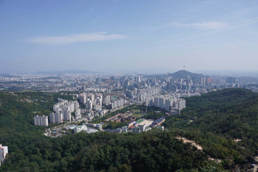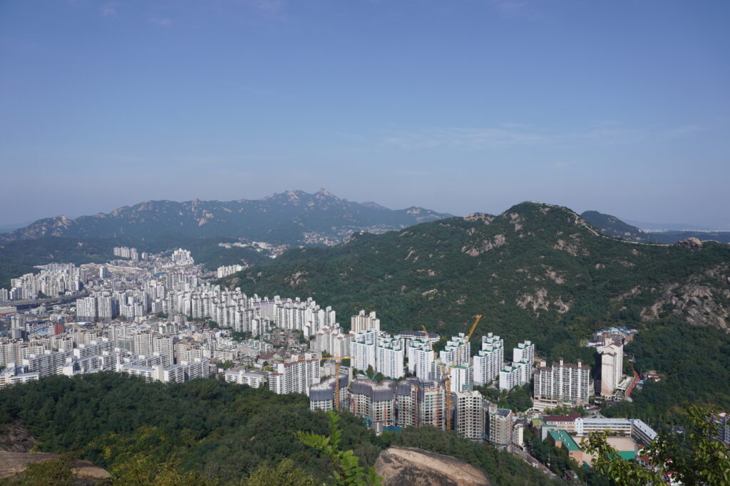 Heute (Sonntag) war ich dann vergleichsweise spontan wieder wandern. Diesesmal ging es zum Ansan (안산) Berg, der direkt hinter der Uni liegt. So bin ich erstmal durch das Unigelände gelaufen, habe noch ein paar Fotos gemacht und anschließend ging es den Berg hinauf zum Gipfel. Diesemal war es irgendwie etwas schwierig den richtigen Weg zu finden, da es fast überall, kreuz und quer Wege hat. Nach ein bisschen Schilderlesen und Kartenbefragung ging es mitten in die Wildnis, einfach den Berg rauf. Nach ein bisschen laufen auf betonierten Wegen, Stufen und Waldboden kam man endlich an einer vernünftigen Kreuzung an. Von dieser Kreuzung ging es dann noch über mehr Stufen hoch bis fast zum Gipfel. Da der Gipfel leider mit einem Funkturm gespickt ist, konnte man nicht direkt dort hin, aber nebenan zur Aussichtsplattform. Von dort hatte man einen wirklich tollen Blick auf die Stadt. Leider war das Wetter heute wieder etwas arg dunstig, sodass man nicht so weit sehen konnte. Nach ein paar Fotos, gab es dann zwei Reisdreiecke als Mittagessen. Anschließend ging es über den Bergrücken wieder zurück Richtung Stadt und Heimat. Über ein paar präparierte Wege ging es dann wieder zurück zu den normalen Straßen. Auf dem Weg bin ich noch durch ein wahrscheinlich sehr neu entstandenes Wohnviertel. Dieses sah wirklich gut aus, bestand aber, wie vieles hier aus relativ großen Hochhäusern. Noch ein bisschen weiter, war ich dann wieder in meinem Viertel. Dort geduscht und erstmal erholt. Aus der Gruppe, die ich gestern gefragt habe für ein Abendessen war noch eine Person dabei, die heute Abend Zeit hatte. Mit der habe ich mich Abends noch getroffen und wir sind gemeinsam Abendessen gewesen. Es gab Chicken and Beer. Anschließend ging es noch ein bisschen durchs Viertel laufen und danach Heim. Hier noch die Bilder: