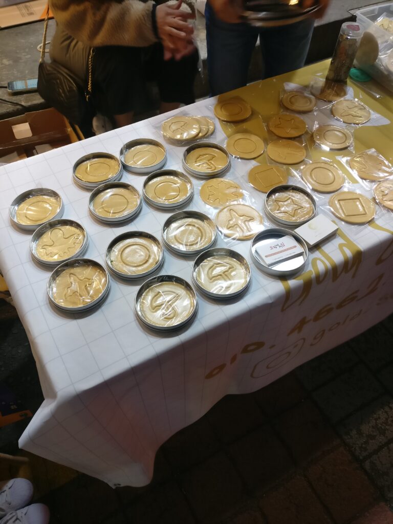 Gestern (Sonntag) wurde dann wieder ‚viel‘ für die Klausur gelernt. Nach einem Block Vorlesungen gab es eine Runde Surfen im Internet und dann wieder den nächsten Block an Vorlesungen. Abends hab ich mich dann noch mit meiner Nachbarin zum Abendessen getroffen. Dort gab es gegrillte Lammspieße mit diversem Gemüse. Ein sehr leckeres Essen. Auf dem Weg nach Hause sind wir dann noch an einem Stand mit Squid Game Keksen vorbei gekommen. Kurz zu Squid Game: Squid Game ist eine relativ neue Serie, die auf Netflix zu sehen ist die durch ihren Stil sehr populär geworden ist. Ich hab sie auch schon gesehen und kann sie nur empfehlen. Auf jeden Fall gab es dort einen Stand, bei dem man genau die Kekse aus dem Spiel in der Serie kaufen konnte. Und naja, ich musste auch einen haben. Beim weiteren Weg nach Hause haben wir leider noch einen Unfall mitbekommen, wo zwei Motoradfahrer, die beim Liefern waren, ineinander gefahren sind. Einen hat es leider vom Motorad runter geholt und das Ding umgeworfen. Schlimm war es zum Glück nicht, aber sicherheitshalber kam dann doch der Krankenwagen. Hier ein Bild der Kekse: