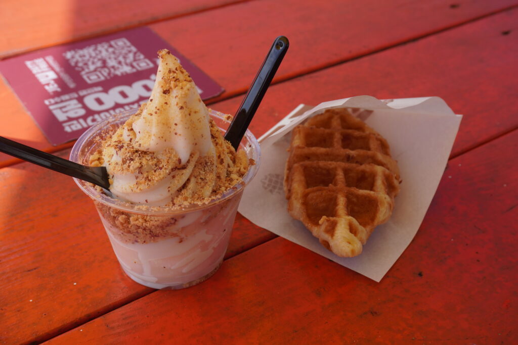 Vorgestern (Samstag) ging es auf die Insel Udo. Udo ist eine kleine Insel hier in der Nähe (ca. 15-30 Minuten mit einer Fähre) die ein paar schöne Attraktionen zu bieten hat. Udo hat außerdem noch eine große Geschichte, die ich aber erst genauer nachschauen muss. Udo ist nämlich vor allem bekannt für die Taucherinnen, die seit mehreren Generationen Muschen tauchen gehen. Das alles haben sie und machen sie nach wie vor mit einfachem Equipemt und der Erfahrung vieler Generationen vor ihnen (wie gesagt, genaues müsste ich noch nachlesen). Das interessante daran ist, dass es tatsächlich nur Taucherinnen und keine Taucher sind, die dieser Arbeit nachgehen. Wie viele heute noch das machen weiß ich leider nicht genau, aber die Tradition ist nach wie vor am Leben. Udo ist aber nicht nur wegen seiner Geschichte sondern zum Beispiel auch wegen der Erdnüsse hier bekannt. So kann man hier diverse Gerichte mit Erdnussfüllung oder Zusatz bekommen (dazu gleich mehr). Am Samstag ging es nach einem entspannten Start Richtung Fährhafen, um auf die Insel Udo zu kommen. Kurz noch die Tickets für die Fähre gekauft und schon ging es los mit einer etwas schaukeligen Bootfahrt. Nachdem ein paar Koreaner auf die Idee kamen Möwen während der Überfahrt mit Chips zu füttern, ergab sich daraus ein lustiges Schauspiel von einer handvoll Möwen, die dem Schiff hinterher flogen, bzw. hinterher gesegelt sind und die Chips entweder in der Luft gefangen haben, ins Wasser gestürtzt sind, um sich den Rest zu schnappen, oder sogar tatsächlich die Chips aus der Hand gefressen haben. Insgesamt verfolgte uns so ein relativ großer Schwarm an hungrigen Möwen bis kurz vor der Ankunft auf Udo. In Udo angekommen war der nächste Schritt erstmal einen fahrbaren Untersatz zu finden, da die Insel doch so groß ist, dass es zu Fuß etwas zu viel Laufen wäre. Nach ein paar Ständen stellt sich aber heraus, dass man für alles höher motorisiertes leider einen Internationalen Führerschein benötigt, den keiner von uns dabei hatte. So fiel die Wahl schlussendlich auf E-Bikes, da diese auch ohne Führerschein zu mieten waren. Mit zwei E-Bikes im Gepäck ging es dann auch schon los einmal rund um die Insel. Zwischendrin gab es noch ein paar Stops für Mittagessen, Fotos und Getränke und nach ca 2h waren wir fast einmal um die Insel und beschlossen in die Inselmitte zu fahren. Dort gab es das Community Center und einen relativ großen Supermarkt, den wir noch besuchten. Danach ging es noch einmal kreuz und quer durch die Insel bevor wir dann unsere E-Bikes wieder abgeben mussten. Zum Einen, weil es kurz vor fünf war, zum Anderen weil der Akku dann doch auch mal leer war. Nachdem wir die Bikes abgegeben hatten, ging es mit der Fähre wieder zurück und noch zum Abendessen. Bilder des ganzen Ausfluges hier: