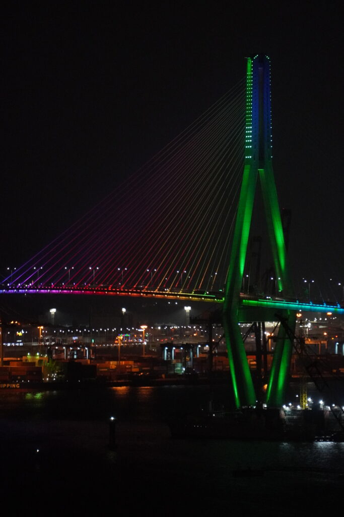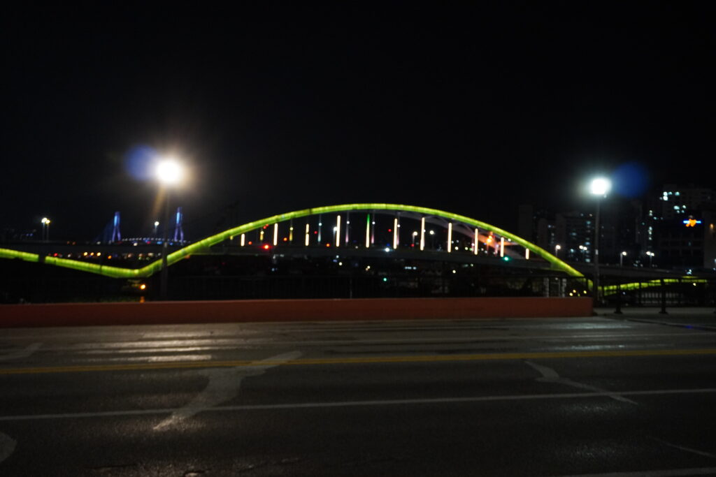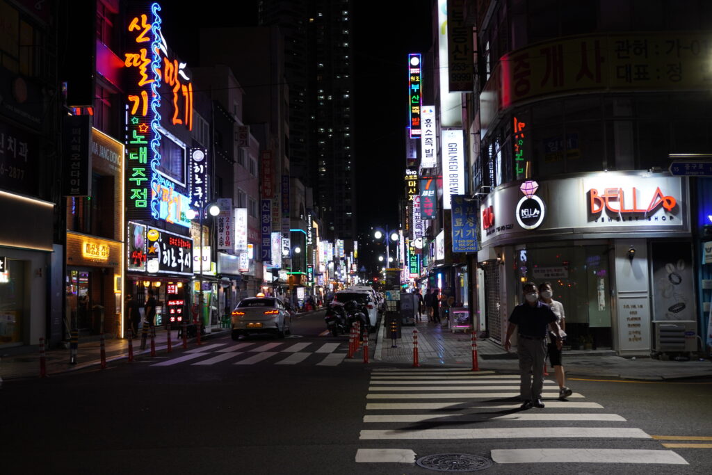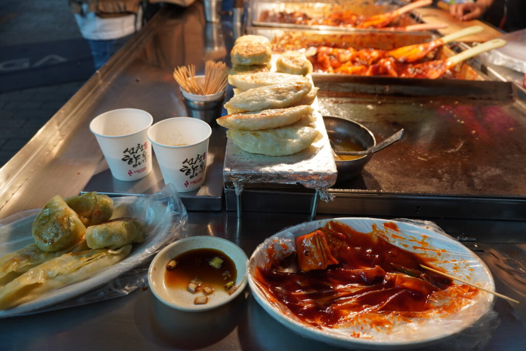 Gestern (Freitag) ging es dann in aller Früh raus zum Zug. Da ich noch nach ein paar Souveniers aus den Städten, die ich das letztemal besucht hatte, noch besorgen wollte, musste es leider ein relativ früher Zug sein. Um kurz nach acht ging dann die Fahrt los mit dem ersten Ziel: Daejeon. In Daejeon angekommen, bin ich ein bisschen durch die Marktstraße gelaufen, die direkt in der Nähe vom Bahnhof lag, allerdings habe ich nach längerer Suche leider keine Souveniers gefunden. Da die Zeit auch schon wieder knapp wurde für den nächsten Zug bin ich wieder zurück zur Station, habe noch meine Brotzeit vernichtet, das Ticket gekauft und bin dann mit dem Zug bis zum nächsten Stopp: Daegu. In Daegu ereilte mich leider genau das gleiche Probelm. Großer Markt bzw. große Marktstraße aber keine Souveniers… Nach einem kleinen Snack ging es mit dem Zug wieder weiter nach Busan. In Busan angekommen wurde erst ins Hostel eingecheckt. Nach ein bisschen kam meine Bekannte noch dazu, da wir auch diesen Trip wieder zu zweit bestreiten 😀 Im Hostel haben wir dann noch ein paar Leute kennengelernt, die wir später wieder treffen sollten. Dann ging es los zum Abendessen. Ziel war einer der vielen Märkte. Nach ein bisschen Laufen, sind wir auch in der Ecke angekommen, allerdings fanden wir dort eher Shops, als Essen. Nach viel Suchen, haben wir uns entschlossen, bei ein paar Straßenverkäuferinnen uns ein Abendessen zu holen. Die meisten Stände waren nämlich schon geschlossen. Das Ganze war sehr lecker und beinhaltete neben Dumplings/Mandu auch die traditionellen Koreanischen Reiskuchen. Anschließend haben wir uns noch in einer Bar mit den Leuten von zuvor getroffen. Nach einer sehr gemütlichen Runde ging es dann noch Nachschlag besorgen und über eine der vielen Brücken zum Meer. Dort haben wir einen gemütlichen Spot gefunden, wo wir dann ein bisschen saßen. Nach ein bisschen ging es zurück Richtung Fischmarkt und dort wurde sich nochmal hingesetzt. Von den neuen Bekannten kam noch eine Freundin dazu, sodass wir dann zu fünft unterwegs waren. Nachdem es dann etwas später wurde, machten wir uns alle wieder auf den Weg nach Hause. Hier noch die Bilder: