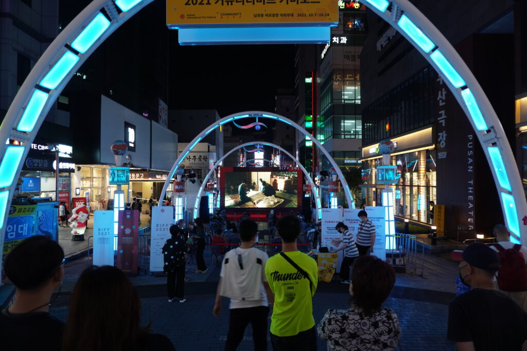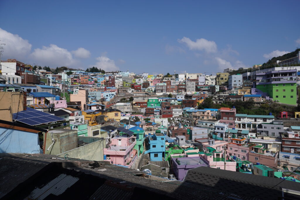 Heute (Samstag) wurde dann Busan erkundet. Zuerst ging es ins Gamcheon Cultural Village, was so ein traditionell erhaltenes Viertel ist, dass mit viel Farbe und kleinen Gäßchen den Abenteurdrang fördert. Außerdem wurden noch viele Souveniershops besucht. Anschließend ging es wieder zu den Märkten, die diesesmal deutlich lebhafter waren. Überall gab es was zu sehen und zu kaufen. Auch an Essensmöglichkeiten mangelte es diesesmal nicht. Nach viel Laufen, haben wir uns noch zu einem kleinen Cafe gesetzt. Danach ging es zu einer der Hauptstraßen, wo wir uns noch ein Abendessen geholt haben. Im Anschluss ans Abendessen ist meine Bekannte schon vor Richtung Hostel, während ich noch unbedingt den Busan Tower und das Rooftop der Lotte Mall sehen wollte. Der Busan Tower war wie erwartet in wechselnden Farben beleuchtet. Nach ein paar Fotos fing aber Musik an zu spielen und die Farben wichen einer Beamerprojektion mit verschiedenen Filmen. Von einfachen Mustern bis hin zu kleinen Geschichten konnte man nun sehen. Nach dem Busan Tower bin zur Lotte Mall. Dort angekommen ging es gleich hoch zur Dachterrasse. Oben auf der Dachterrasse wurde aber schon angefangen abzusperren. Kurz noch durch die offenen Wege geschlichen, kam ich noch nach ganz oben, um Fotos zu machen. Dann wieder zügig runter, um nicht auf dem Dach übernachten zu müssen. Der restliche Weg von der Mall bis zum Hostel wurde dann noch Heim gelaufen. Einmal noch unter die Dusche und ab ans Tablet für den Blog. Hier noch die Bilder: