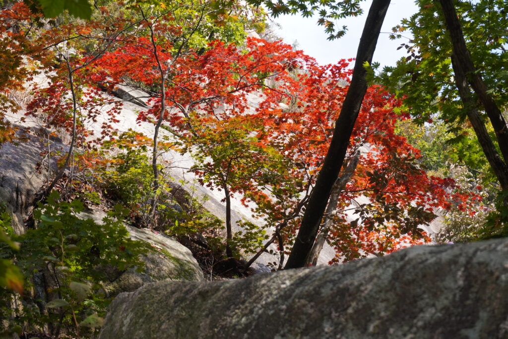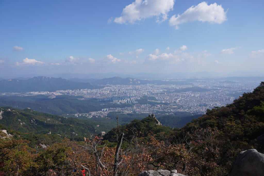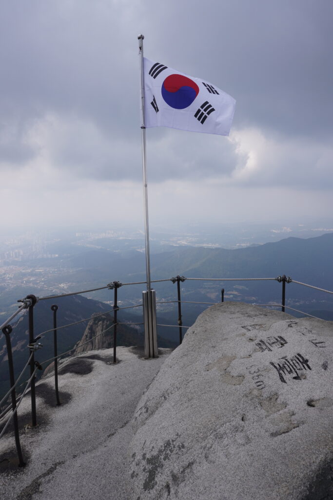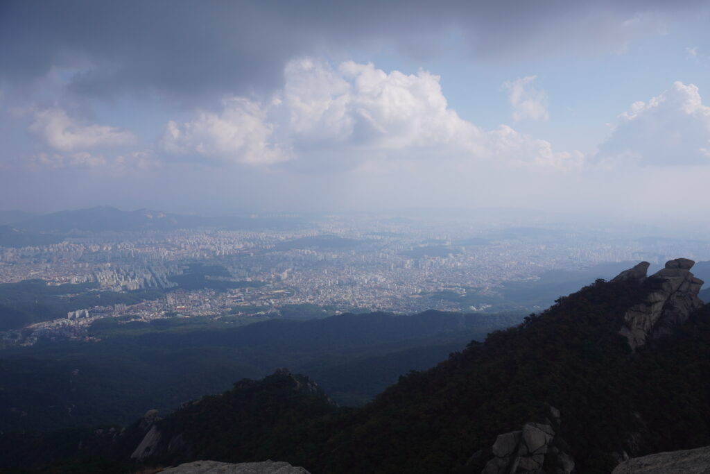 Am Dienstag war ich wieder im Bukhansan wandern. Diesesmal mit einem Kumpel zusammen, der dort auch schon war, aber noch nicht auf dem höchsten Punkt war. Also gings am Vormittag los, Mittagessen besorgen, in die U-Bahn und bis zum klassischen Startpunkt fahren. Von dort aus ging es dann wie üblich den Berg nach oben. Viele Stufen, Steine und Wald. Durch die kühleren Temperaturen war es aber angenehm zu wandern. Sobald man los ging wurde einem warm genug. Nach ca. 2,5h waren wir dann am Gipfel. Dort dann Mittagessen gemacht und ausgeruht. Allerdings nicht lange, da die Sonne nicht so wirklich raus kommen wollte und es mit dem Wind dann doch etwas kühler als gedacht. Also ging es wieder nach unten. Unten angekommen gab es dann noch eine Stärkung, bevor es wieder nach Hause ging. Insgesamt haben wir ’nur‘ 5h für die ganze Wanderung gebraucht, also super fix. Hier noch die Bilder: