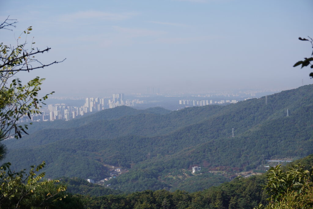 Vorgestern (Freitag) ging es dann wieder wandern. Diesesmal aber eine ganz andere Route und in Begleitung von einer Bekannten, die ich in Busan kennen gelernt habe. Sie war mit Leuten übers Wochenende in Seoul und hatte sich dafür bereiterklärt mit zu wandern. Der Startpunkt war weiter nördlich, als der Standardweg und deshalb auch nicht so überlaufen. Zusammen mit einer Gruppe Hardcore Wander Koreanern sind wir gestartet, haben uns aber zwischendrin einen relativ großen Vorsprung verschafft. Die Route an sich ist anspruchsvoller als die standard Variante, aber hat deutlich mehr an Aussicht zu bieten. Liegt einfach daran, dass man nicht zwischen zwei Bergflanken hoch läuft, sondern auf dem Rücken einer der Bergzüge. Dadurch kann man einfach viel besser die Aussicht genießen. Nach einigen Stufen, steilen Stücken und Treppen später, mussten wir zurück zwischen die Bergflanken, um weiter aufzusteigen. Dort gab es dann Steinstufen, bis fast nach ganz oben, was natürlich relativ anstrengend war. Oben angekommen ist man durch eine kleine Spalte geschlüpft und hatte schon eine erste Aussicht auf die Stadt, wie so ein Portal in eine andere Welt fast. Auf der anderen Seite ging es dann wieder zum Gipfel. Mittagessen gegessen und kurz ausgeruht. Diesesmal wieder für den Gipfel angestanden und danach wieder nach unten. Aber nicht nach ganz unten sondern nur zur normalen Route. Von dort aus ging es dann den vor uns liegenden Bergrücken ablaufen. Die Route war gemischt von bisschen Bergauf und Bergab. Da es aber zwischendrin auch einfach ebene Stücke gab, sind wir relativ schnell voran gekommen. So haben wir Berggipfel nach Berggipfel besucht und erklommen. Wir kamen auch an der Stelle vorbei, wo mein Bruder und ich damals vorbei gekommen sind. Insofern ein bisschen ‚Nostalgie‘ Gefühl. An einem der Gipfel haben wir zwischendrin nochmal Pause gemacht. Nachdem wir schon relativ lange unterwegs waren, sah man bereits, wie die Sonne sich langsam dem Horizont näherte. Also sind wir zügig weiter, haben auf dem Weg auch noch Koreaner getroffen, die meinten, Beeilung, wird demnächst dunkel. Wir wollten noch einen letzten Gipfel passieren und dann den Abstieg beginnen. Leider habe ich die Abzweigung für den Weg UM den Gipfel nicht gesehen und so sind wir noch auf die weitere Gipfelspitze geklettert und ich meine wirklich geklettert. Oben angekommen wollten wir auf der anderen Seite wieder nach unten, wovon uns ein paar Koreaner aber abhielten, zum Glück. Denn es gab dort keinen richtigen Weg und die Karte gab das nicht ganz genau her, da da nämlich ein Weg sein sollte. Also sind wir den Weg wieder auf der Ankunftsseite wieder nach unten geklettert und haben uns auf den Weg zum nächsten Abstieg gemacht. Durch dieses unerwartete Hindernis, war es aber schon so spät, dass es dunkel war. Zapp Licht aus. Ich habe für die Wanderungen immer meine Stirnlampe dabei, falls mal sowas passiert und jetzt machte sich das auch bezahlt. Also raus aus dem Rucksack und ab auf den Kopf. Damit war es nicht mehr komplett dunkel, aber auch nicht besonders hell. Es reichte um ohne Probleme zu sehen wo man hin tritt. Auf dem Weg nach unten gab es dann aber ab und zu noch die Frage, sind wir hier richtig, das sieht nicht nach Weg aus. Einmal umgeschaut und den eigentlichen Weg wieder gefunden. Also man kann sich dabei wirklich sehr schnell verlaufen, vor allem sieht der Weg im dunkeln sehr natürlich aus. So kann man ihn schnell übersehen. Aber wir sind auf dem rechten Weg geblieben und kamen am Ende an einer Straße raus, der wir noch ein ganzes Stück bis zum Parkende gefolgt sind. Dort gab es dann auch wieder Straßenbeleuchtung und öffentlichen Nahverkehr. Mit dem Bus ging es dann wieder zurück. Zurück in der Heimat ging es dann noch Abendessen und anschließend nach Hause. Nachträglich lässt sich sagen, dass den Berg da hoch klettern nicht die beste Idee war und auch nicht ungefährlich, aber alle sind wieder gut nach Hause gekommen. Ein verrücktes Erlebnis mehr zu erzählen.. 😀 Hier noch ein paar Bilder: