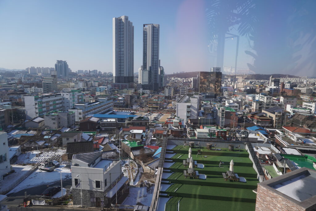 Vorgestern (Sonntag) wurde dann ausgeschlafen, da es am Samstag doch schon recht spät war. In der Früh ging es dann zu einem Cafe mit wunderschönem Blick über die Stadt. Dort gab es dann ein kleinen Brunch, bevor es dann weiter ging. Beim Brunch waren auch noch Freunde von Samstag mit dabei, die aber dann gehen mussten, um noch nach Seoul zu fahren. Ich bin dann gemeinsam mit meiner Bekannten noch durch Cheongju gelaufen und sie hat mir noch Downtown und ein bisschen die Stadt gezeigt. Wir sind dann noch am Stadtfluss ein Stück entlang, haben noch Fotos in einer Fotobox gemacht (hier aktuell sehr im Trend) und sind dann noch in ein Cafe. Nach dem Cafe ging es dann weiter zum Abendessen, bei dem es sehr lecker Nudeln gab. Für das Cafe und Abendessen war auch die Freundin wieder dabei, bei der ich übernachten konnte. Im Anschluss ans Abendessen ging es dann wieder zur Wohnung der Freundin und es wurde noch Feuerzangenbowle und Dinner for one geschaut (ja ich weiß, für das letzte noch etwas zu früh). Dann ging es auch schon quasi wieder ins Bett, diesesmal sehr früh ^^